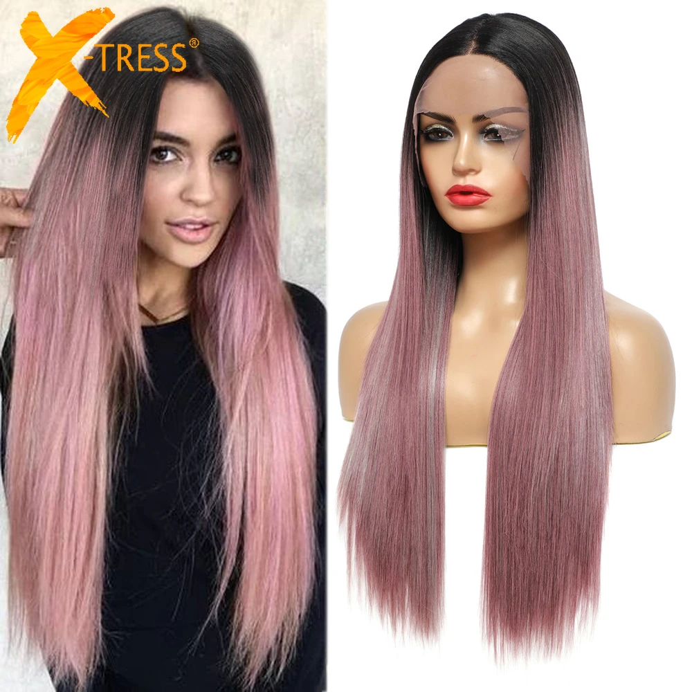 Парик из синтетического кружева, цвет Омбре, длинные, 26 дюймов, прямые, мягкие, средняя часть, Лолита, парики для волос, для белых женщин, термостойкие, X-TRESS