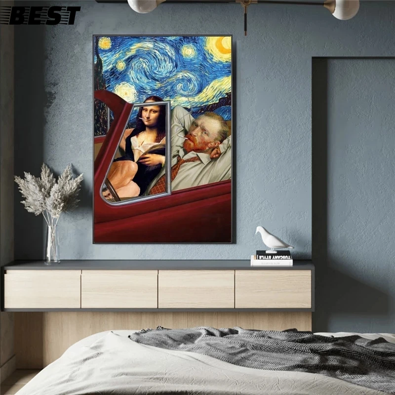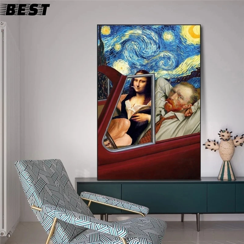 Забавное Искусство Ван Гога и Мона Лиза постеры для вождения абстрактная картина маслом на холсте настенные картины Домашний декор для стен