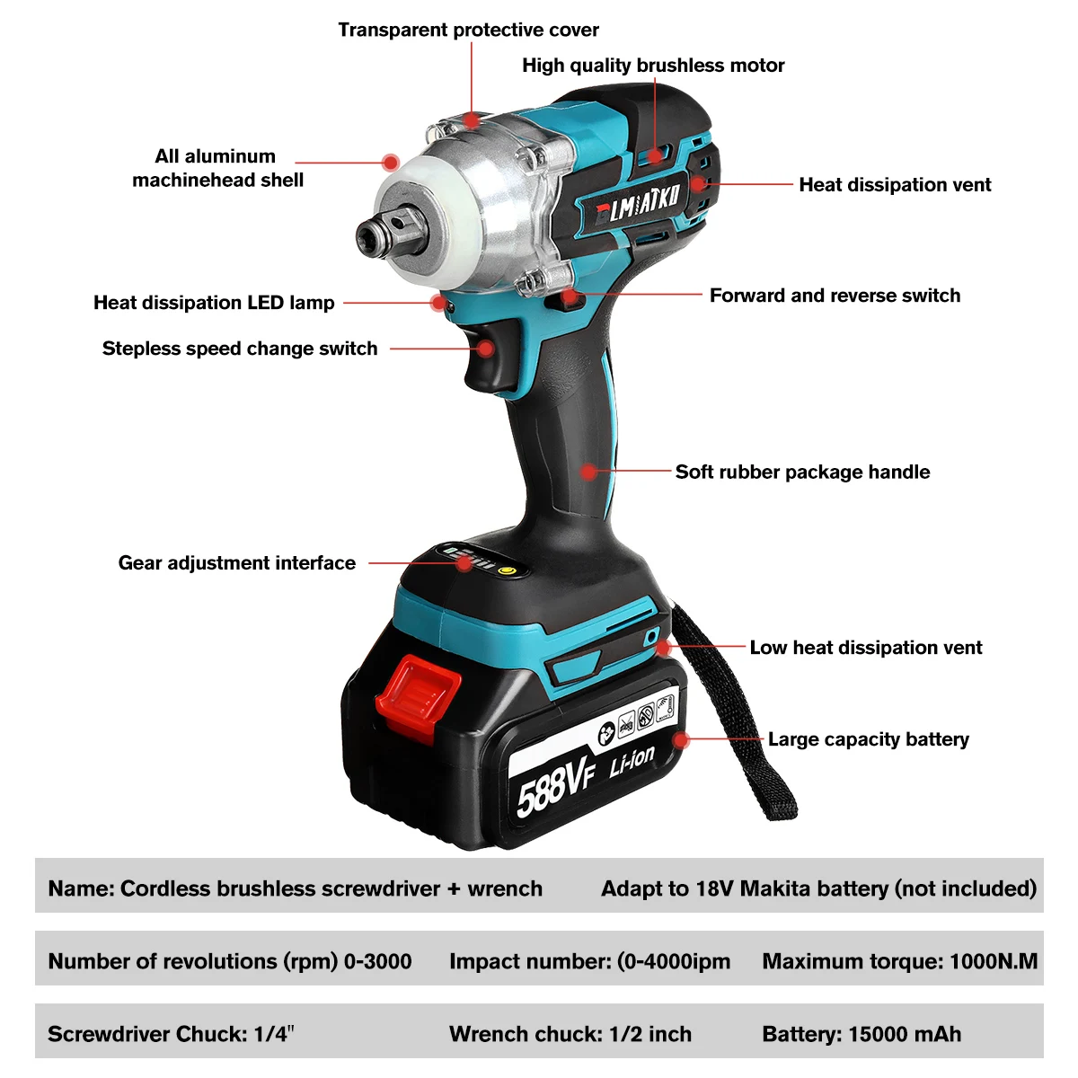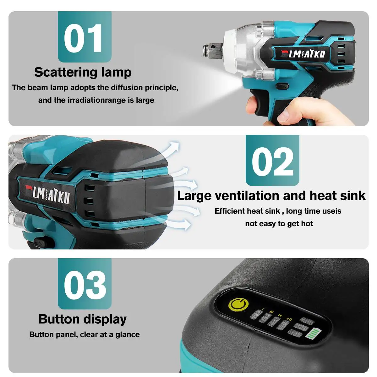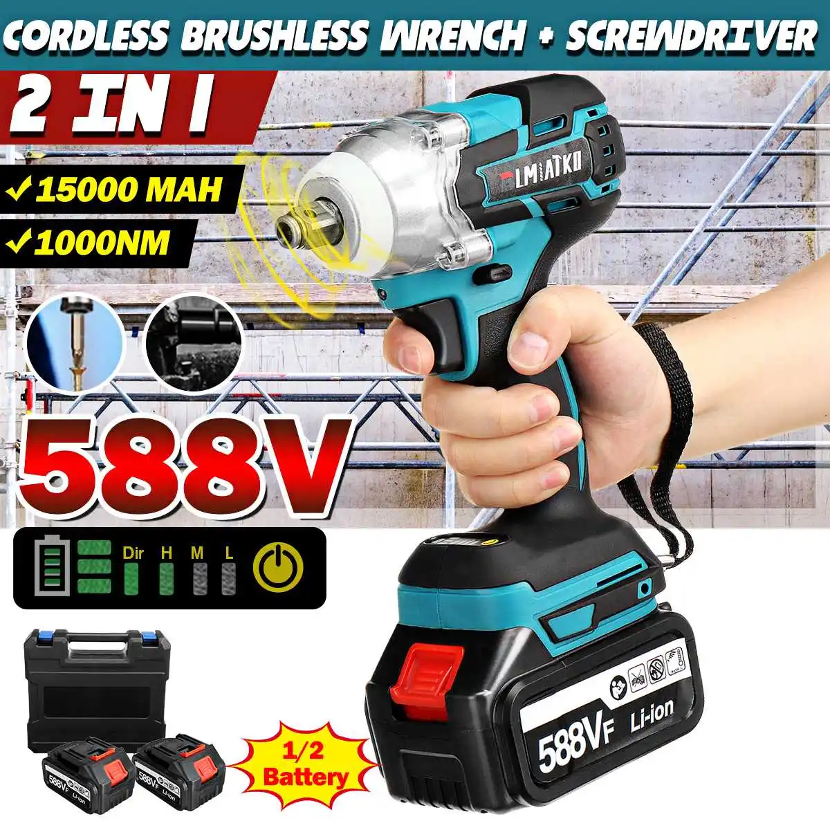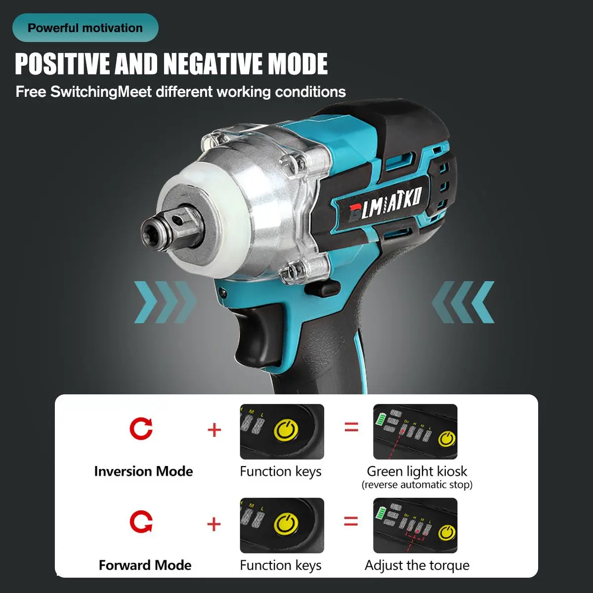 BLMIATKO обновления 4 Скорость бесщеточный Электрический Аккумуляторный ударный гайковерт с 2 Батарея 588V Перезаряжаемые 12 дюйма ключ, дюймовый стандарт Мощность инструменты