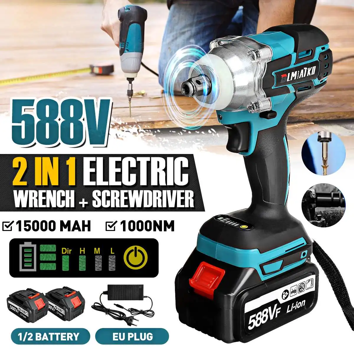 1000Nm 588V бесщеточный ударный ключ беспроводной 1/2, 1/4 розетка Электрический гаечный ключ электроинструмент