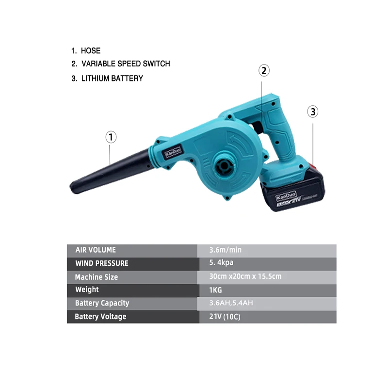 Воздуходувка для снега Kanduo, 21 в, беспроводная, высокой мощности, для очистки двора и очистки листьев
