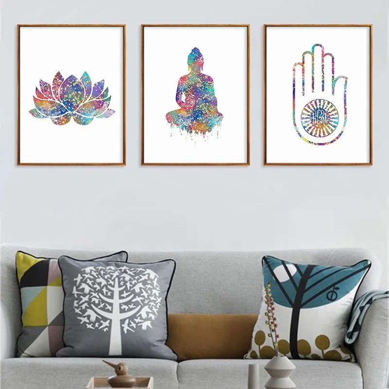 Абстрактное искусство, акварельная статуя Будды, красочный Лотос, пальма, холст, живопись дзен, Современное украшение для дома, гостиной, картина