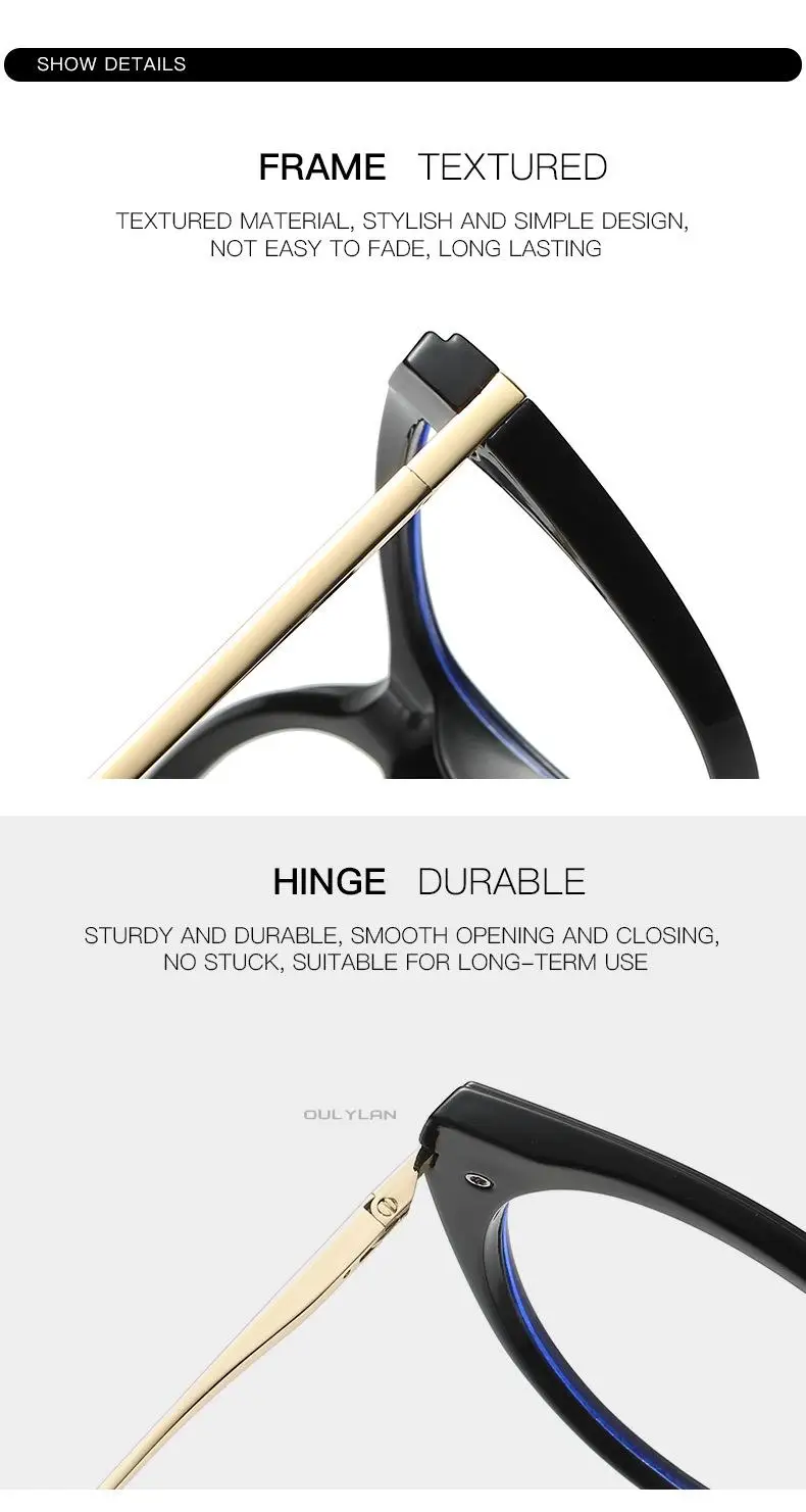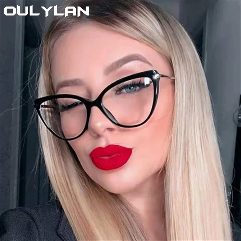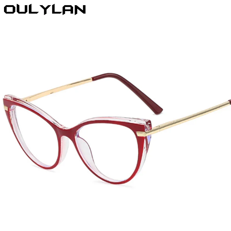 Оправы для очков Oulylan с защитой от синего света, Женские винтажные оправы для очков TR90, мужские металлические оптические прозрачные очки по рецепту