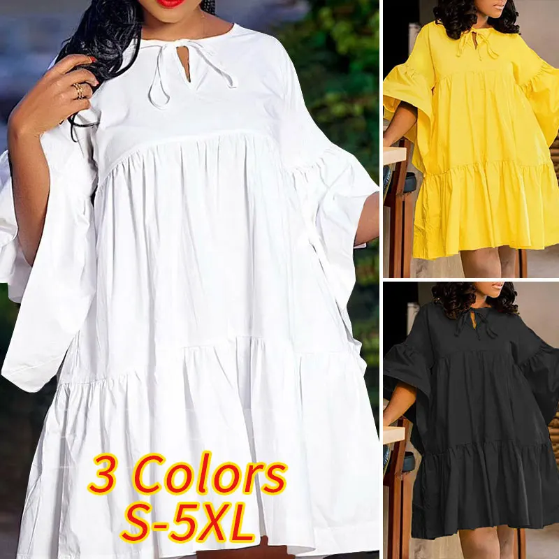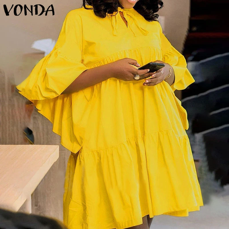 Мини-платье VONDA, повседневные плиссированные платья с рукавом 34, летние расклешенные рукава, простой мини-халат, богемные платья, сарафан