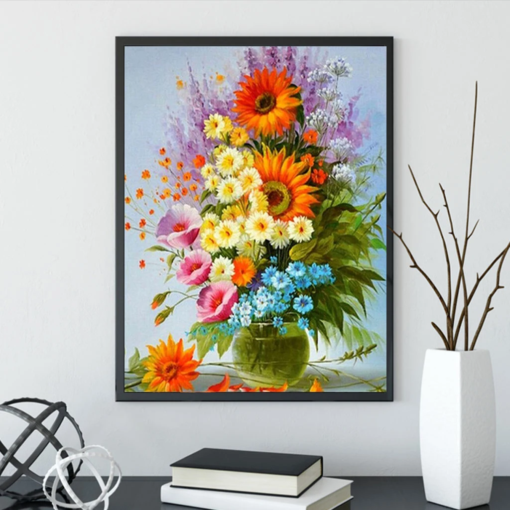 Pintura de diamantes artesanales 5D, jarrn, punto de Крус, flor de ...