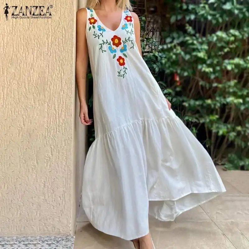 Майка ZANZEA женская с цветочной вышивкой, винтажная Повседневная Б...