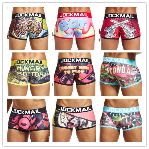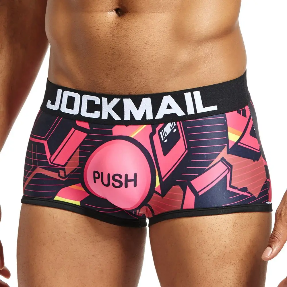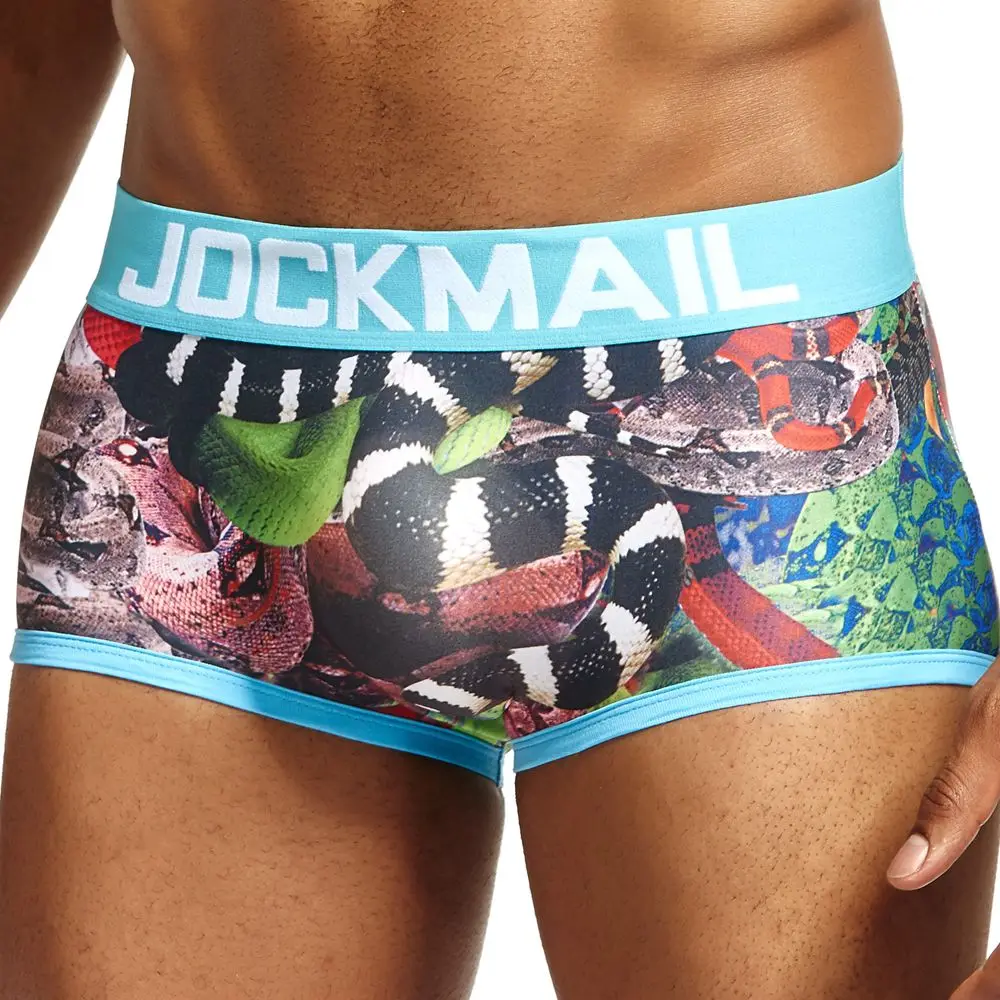 Трусы-боксеры Jockmail мужские с заниженной талией, цветные Дышащие Короткие штаны из спандекса, нижнее белье с мультяшным животным для геев