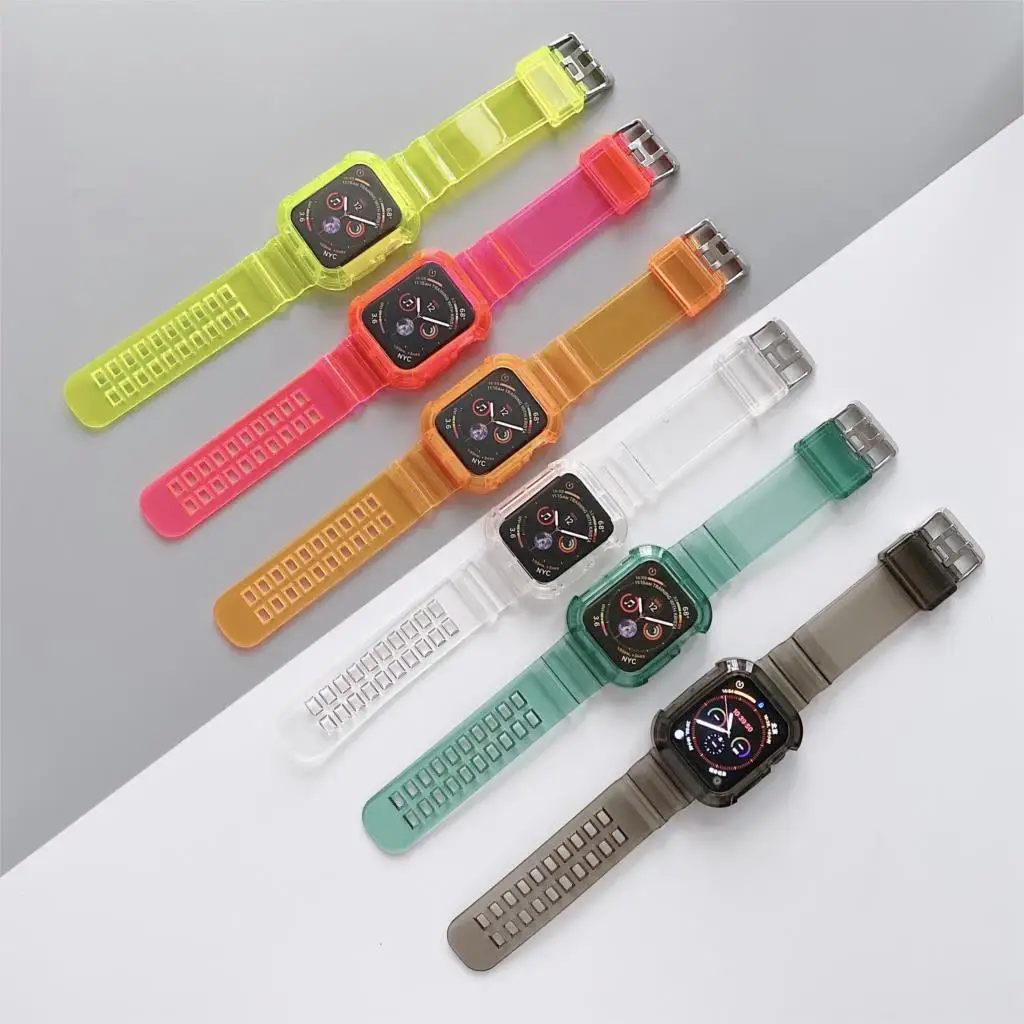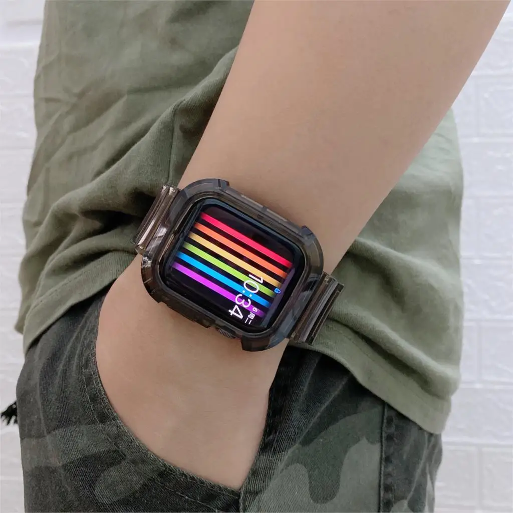 Чехол и ремешок для apple watch series 7 6 se 5 4 3 iWatch 44 мм 40 мм 3842 мм, силиконовый прозрачный браслет для Apple watch band 4145 мм