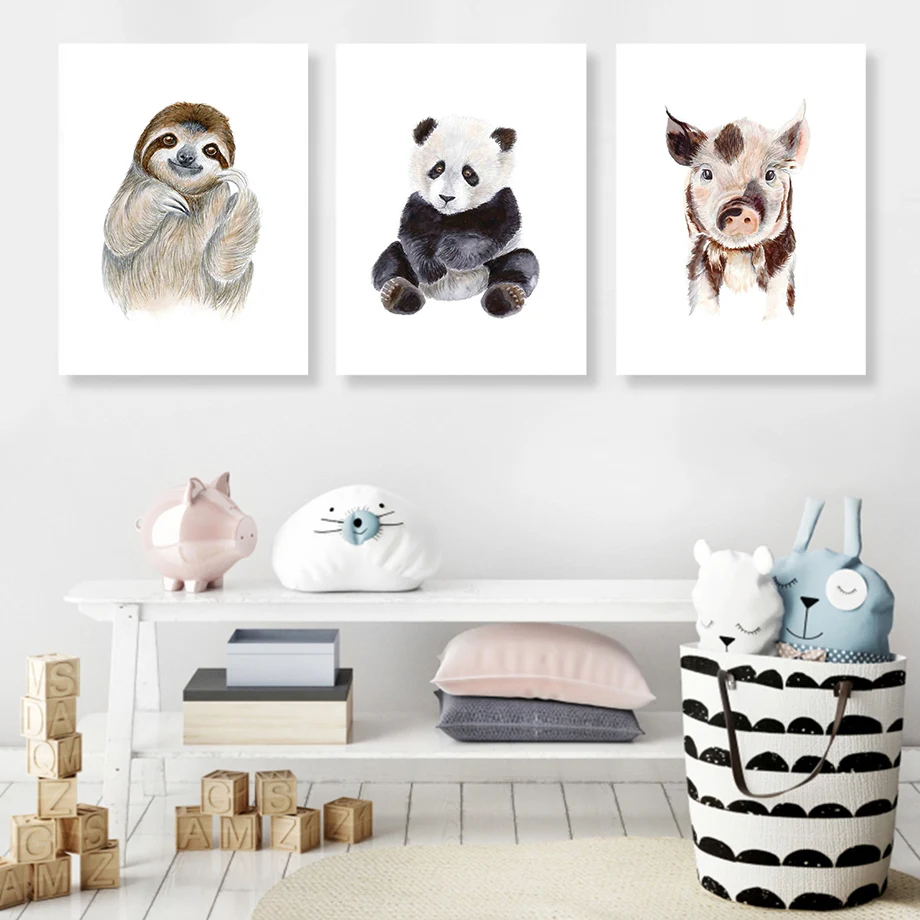 Овца Ленивец корова свинья слон красная панда животное настенное Искусство Холст Картина скандинавские плакаты и принты настенные картины Детская комната Декор