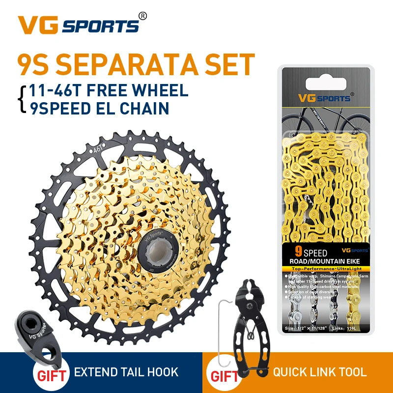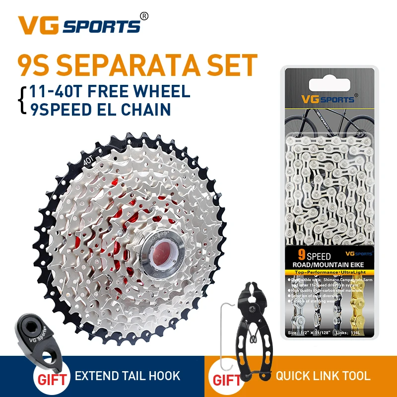 VG Спортивная Ультралегкая 9-скоростная кассета Velocidade, 9 В, кассета для горного велосипеда, отдельные кассеты, свободное колесо + комплект половинчатых велосипедных цепочек