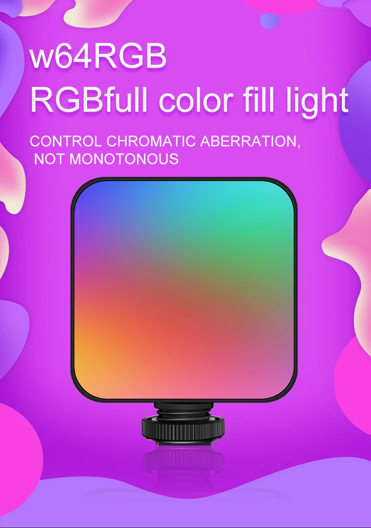 Светодиодный фсветильник W64 RGB для фотосъемки, 2000 мАч, портатив...