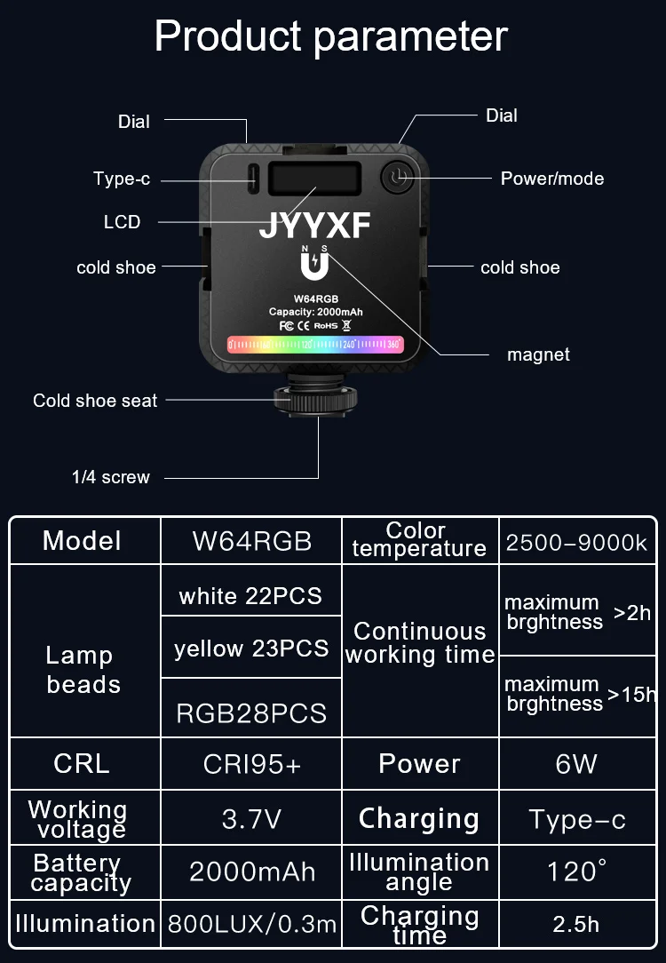 JYYXF W64 RGB полноцветный светодиодный заполняющий светильник фото...