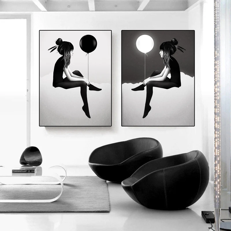 Абстракция голая шар девушка холст для живописи черный, белый цвет художественные плакаты и принты настенные картины Nordic Гостиная украшение дома