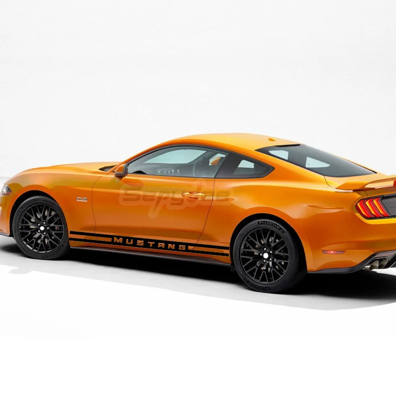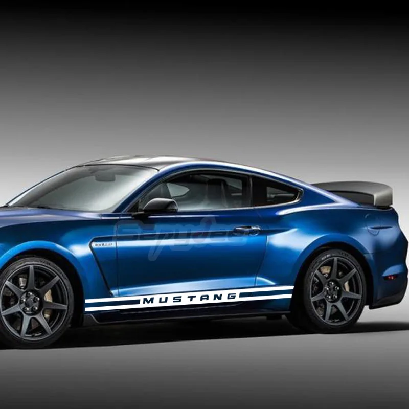 2 шт., Двусторонняя наклейка на юбку автомобиля, Длинные полосы, 5D углеродная Виниловая наклейка для Ford Mustang 2009-2020 GT Shelby, автомобильные аксессуары