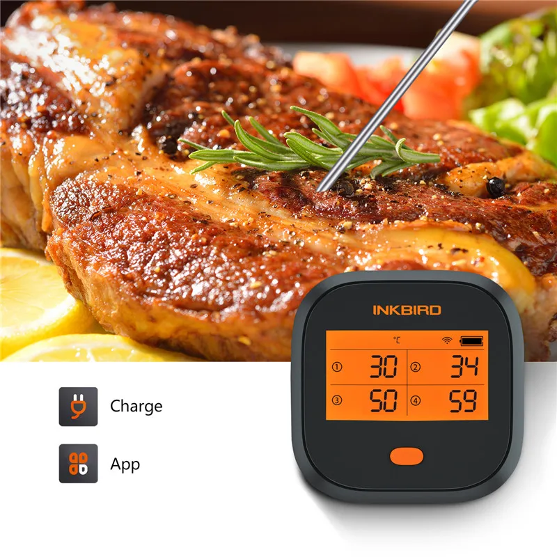 Калибровочный Магнитный термометр INKBIRD, устройство для измерения температуры, с Wi-Fi, для барбекю и еды, с 4 щупами из нержавеющей стали