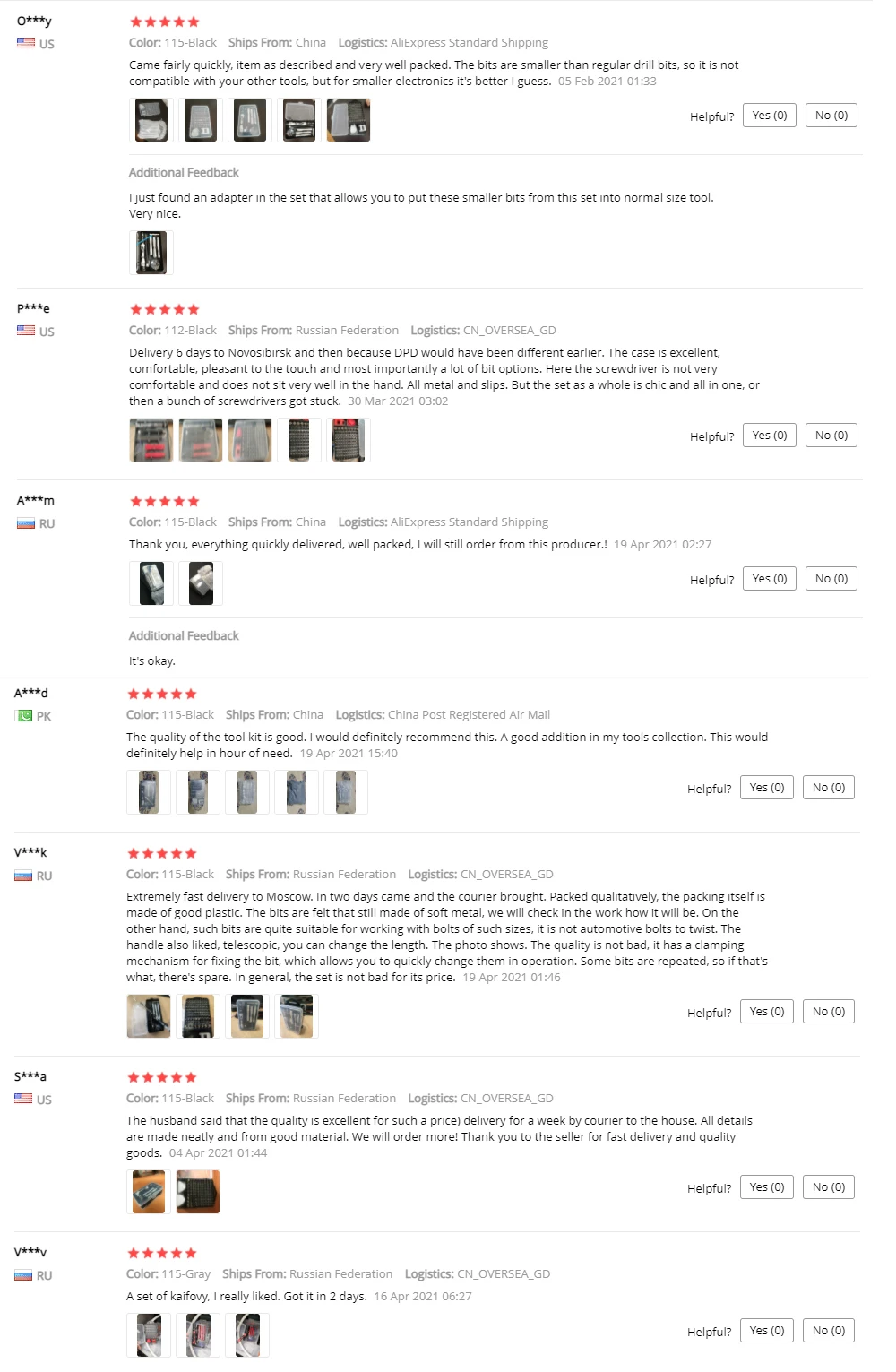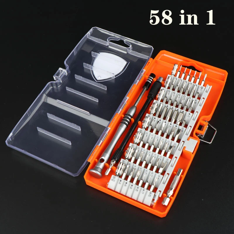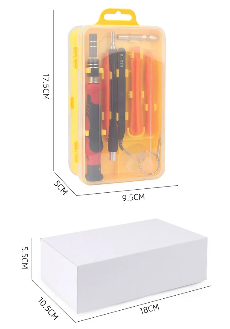 Спецификация отвертки:PH000, PH000, PH00, PH00, PH0, PH0, PH1, PH1, PH2 и PH2M, word, PZO, PZO, PZ1, PZ1, PZ2 и PZ2Прямые: 1,0, 1,5, 2,0, 2,5, 3,0, 3,5 и 4,0Прямые: 1/16, 5/64, 3/32, 7/64, 1/8, 9/64 и 5/32Пять звезд: 0,8, 0,8, 1,2, 1,2, 1,5, 1,5, 2,0 и 2,0Torx: T3, T3, T4, T4, T5, T5, T6, T6, T7, T7, T8, T8, T9, T9, T10,T10, T15, T15, T20 и T20Шестигранник: 07, 0,9, 13, 1,3, 1,5, 1,5, 2,0, 2,0, Z5, 2,5, 3,0, 3,0,3,5, 4, 0 и 4,0Шестигранник: 1/16, 5/64, 3/32, 7/64, 1/8, 9/64 и 5/32Треугольник: 2,0, 2,3, 2,7 и 3,0Форма "U": 2,6 и 2,6Форма «Y»: 2,0 и 3,04 мм разъем: M2.5, M3.0, M3.5, M4.0, M4.0, M4.5, M5.0 и M5.5Посылка включает:1 * ручка из алюминиевого сплава1 * удлинитель1 * короткая планка1 * пинцет1 * pin sim-карты1 * магнетизатор/размагничиватель1 * Присоска1 шт.2 * коронка1 * Магнитная пластина90 * Биты отвертки