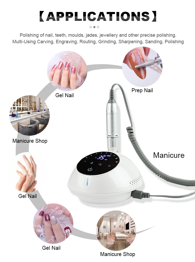 Сочетание быстрого преобразования полировщика и многофункционального блока питания. Резьба, гравировка, фрезерование, шлифовка, заточка, шлифовка, полировка для акриловых ногтей, гелевых ногтей, искусственных ногтей, натуральных ногтей, ногтей домашних животных, не рекомендуется использовать для чего-то твердого