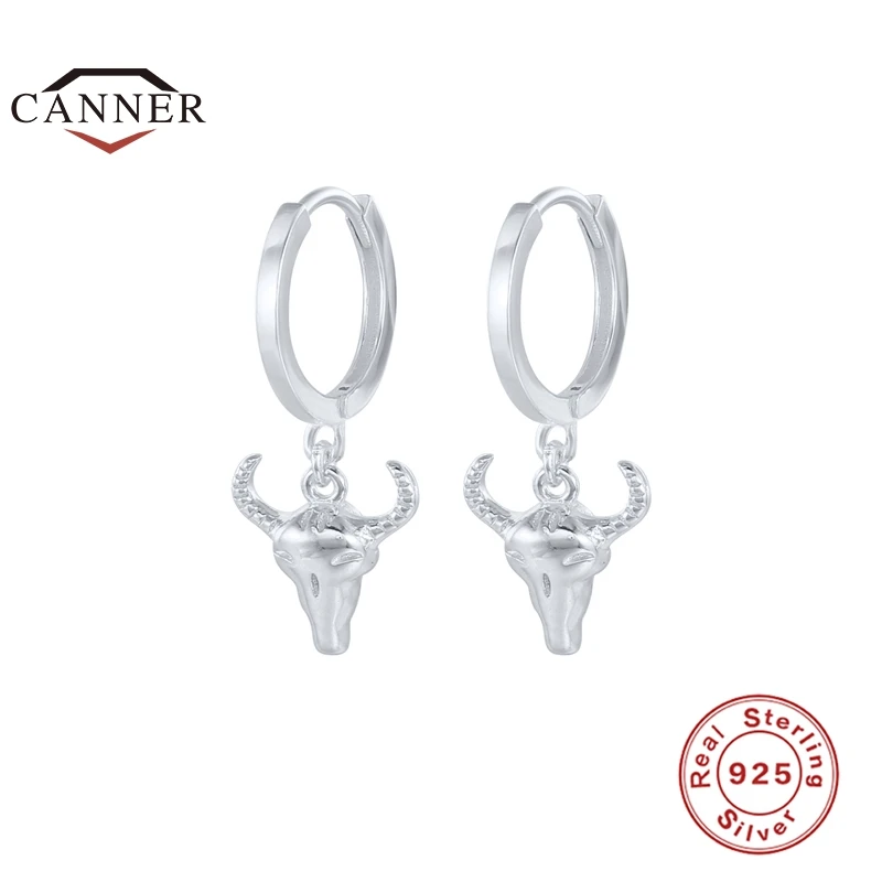 Серьги-подвески женские из серебра 925 пробы в виде Головы Быка