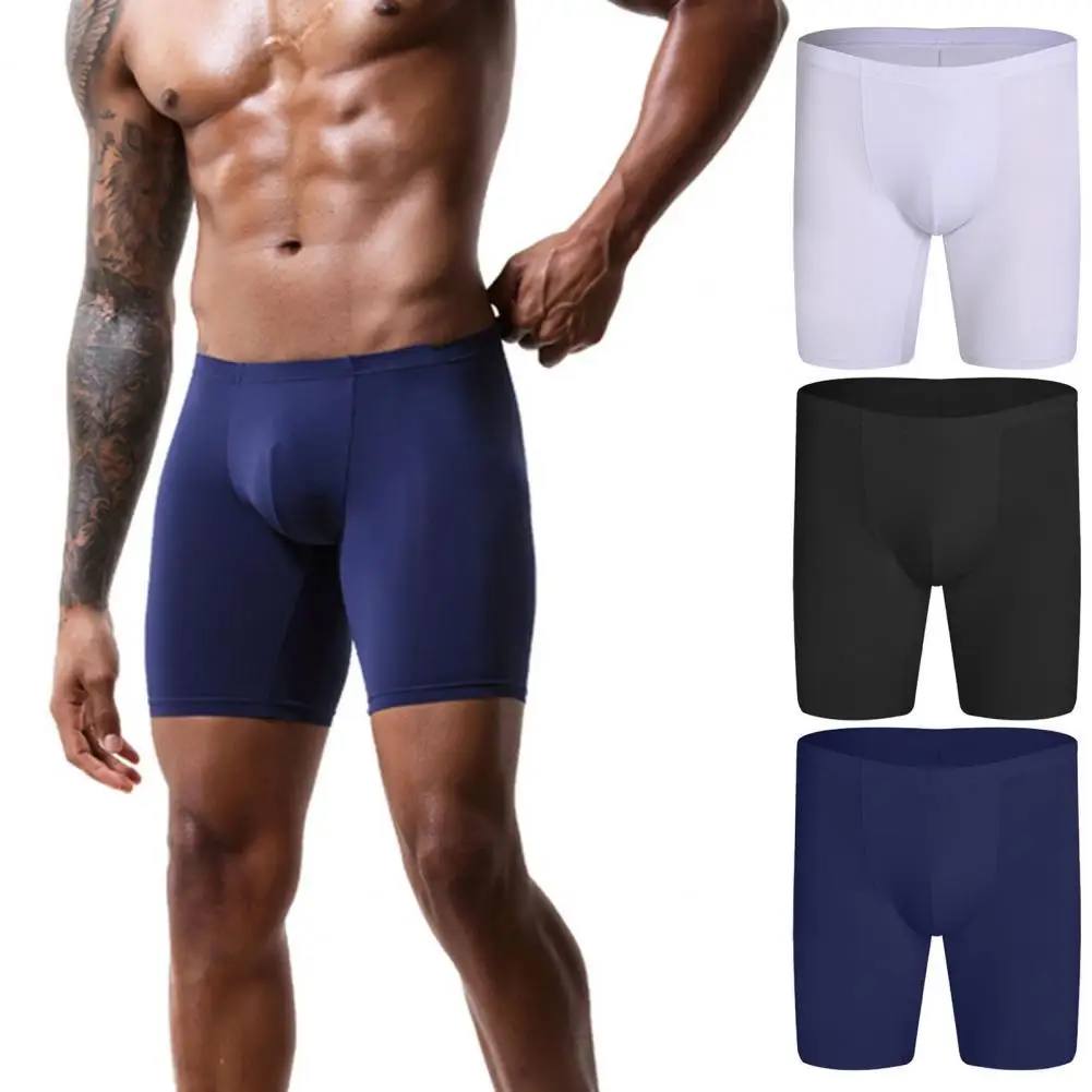 Нижнее белье, боксеры с длинными штанинами, дышащие мужские трусы из ледяного шелка, нижнее белье для дома, мужские удобные мягкие боксеры, нижнее белье
