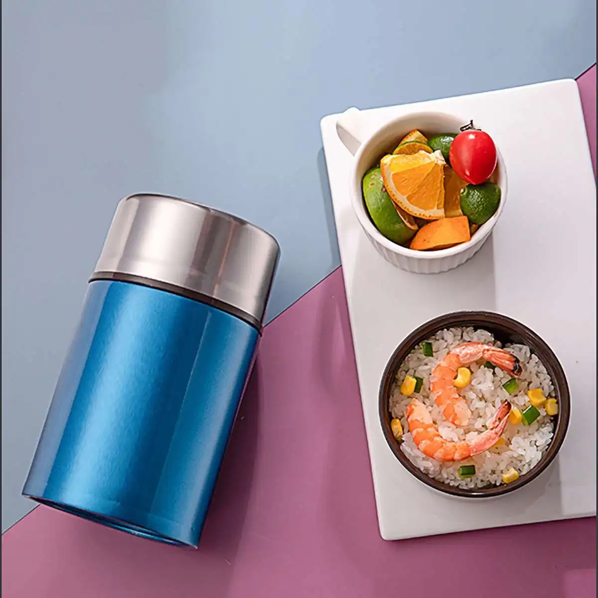 Особенности:● Безопасный материал PREMIUN --- термос изготовлен из пищевой нержавеющей стали марки 304, не токсичен, не содержит ПВХ и BPA. Не ржавеет, не ломается и не передает ароматизаторы. С силиконовой планкой на дне, не скользит и может стоять устойчиво на столе. Надежный контейнер для здорового питания для детей и взрослых, идеальный подарок для семьи.● Изолированная термос-банка для еды --- инновационная технология вакуумной изоляции с двойными стенками для максимального удержания температуры, сохраняет продукты горячими или холодными в течение 12-24 часов. Остается прохладным на ощупь с горячими продуктами и защищает от пота и холода. Отлично подойдет для обеда, супа, каши, тушения, овсяных хлопьев, макарон, закусок, молока, мороженого и так далее.● Супер герметичность --- двойная крышка для герметичного закрытия и полной герметичности, нет утечки даже встряхивания или удержания вверх дном. Безопасно положить в детские ланчбоксы или пакеты для обедов для взрослых, защита от пота и герметичность, просто носите его с уверенностью.● Широкое отверстие и складная ложка --- дизайн с широким отверстием, что позволяет легко наполнять, есть и чистить (мы предлагаем ручную мойку для сохранения вакуумной изоляции). Верхнюю крышку можно использовать как миску, внутреннюю завинчивающуюся крышку легко надевать и снимать, поставляется со складной ложкой из нержавеющей стали, практично и легко есть везде с этим термосом для еды.● Портативный размер-вместимость 750/1000 мл, достаточно большой, чтобы поместить весь прием пищи или закуски для детей и взрослых. Идеальный размер, чтобы взять термос с собой в школу, на работу, на ходу, в путешествие или выживать без необходимости разогревать или охлаждать еду.