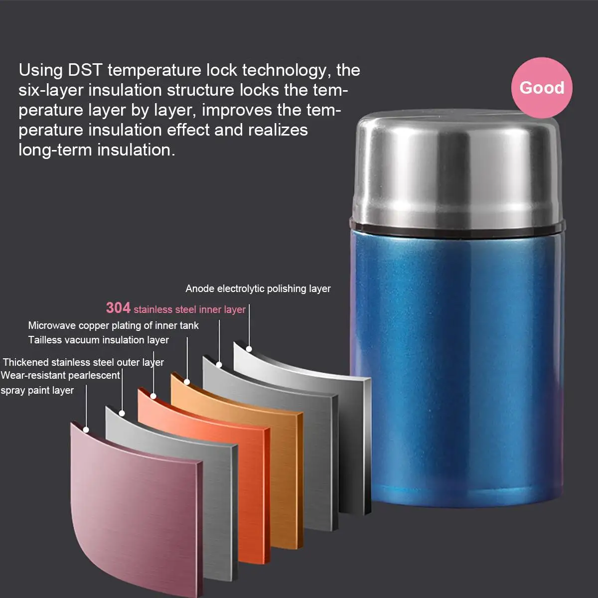 Термос из нержавеющей стали 7501000 мл, контейнеры для супа, вакуумные фляжки большой емкости, портативные для ланча, бенто с ложкой
