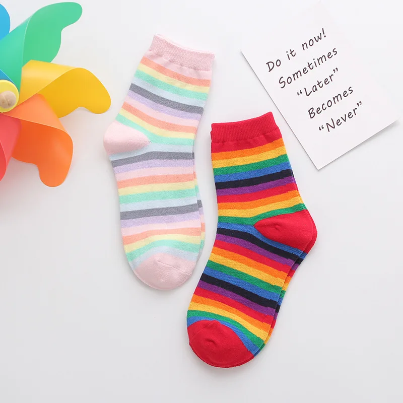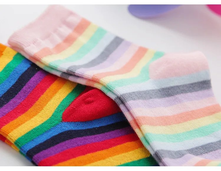 Радужные полосатые носки harajuku милые женские kawaii calcetines de la mujer женские носки meias mulher skarpetki meia femme chaussettes