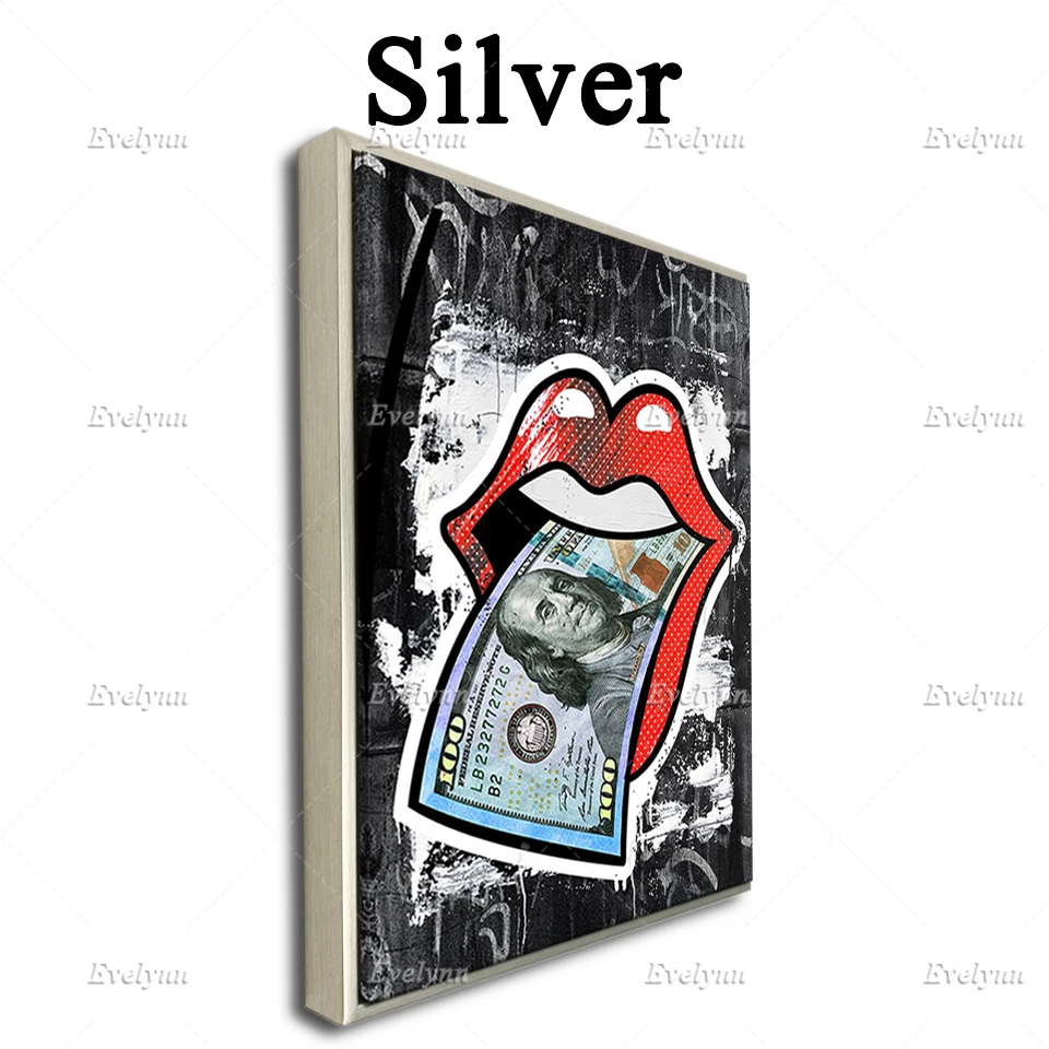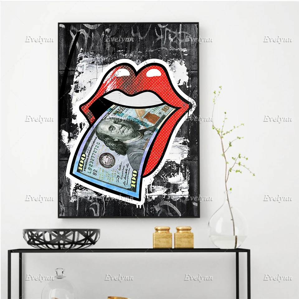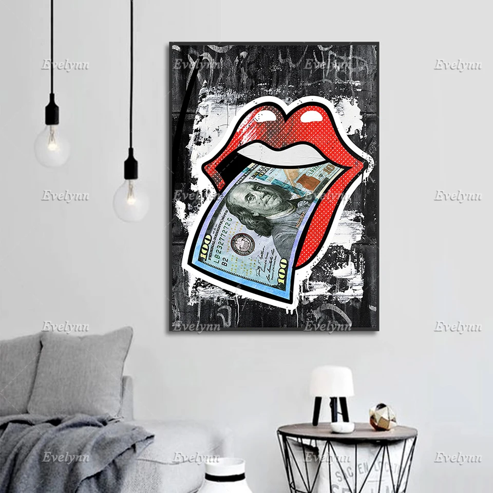 Модульные картины куадроса, настенный плакат с монетами, холст, домашняя живопись, Hd принты, граффити, красные губы, рот, домашний декор, плавающая рамка