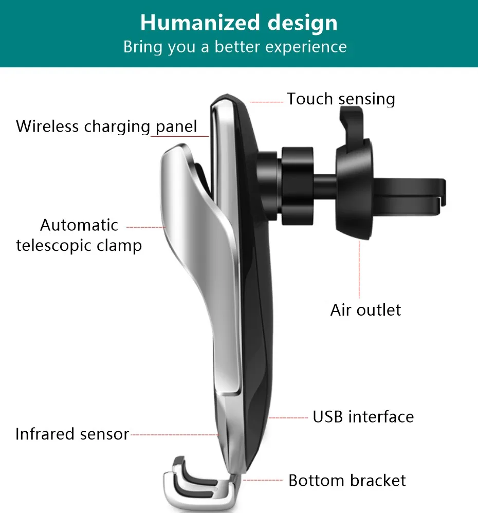Материал: АБС-пластик + ПоликарбонатБыстрая зарядка: Поддержка QC 3,0/2,0Выходная мощность: 5 В/1.0A, 9 В/1,67 A (максимум)Длина кабеля: 1 метрСовместимый размер: 4,0-6,5 дюймов смартфон (поддержка функции беспроводной зарядки)Расстояние зарядки: до 10 мм/0,39 дюйм (ов)Интеллектуальный автоматический датчик Matic* Это автомобильное беспроводное зарядное устройство автоматически открывается и касается верхней зоны обнаружения, чтобы вынуть ваш телефон. Безопасное вождение!Ультра-стабильный для безопасного вождения* Большие индукционные катушки могут быстро идентифицировать телефон и обеспечить быструю и безопасную зарядку для него.