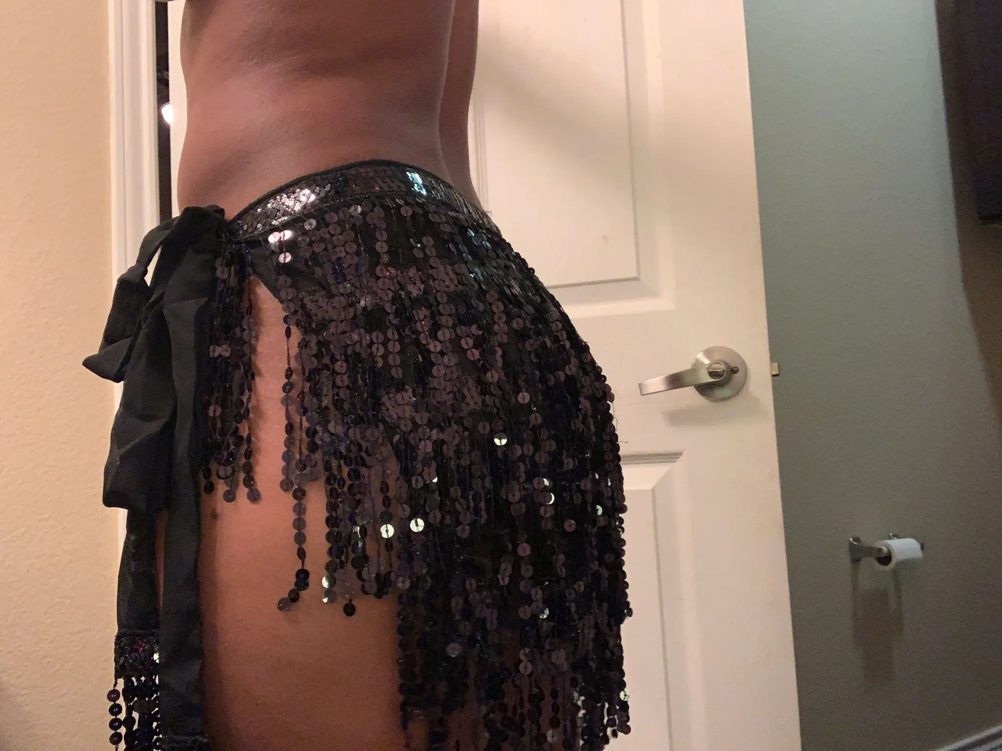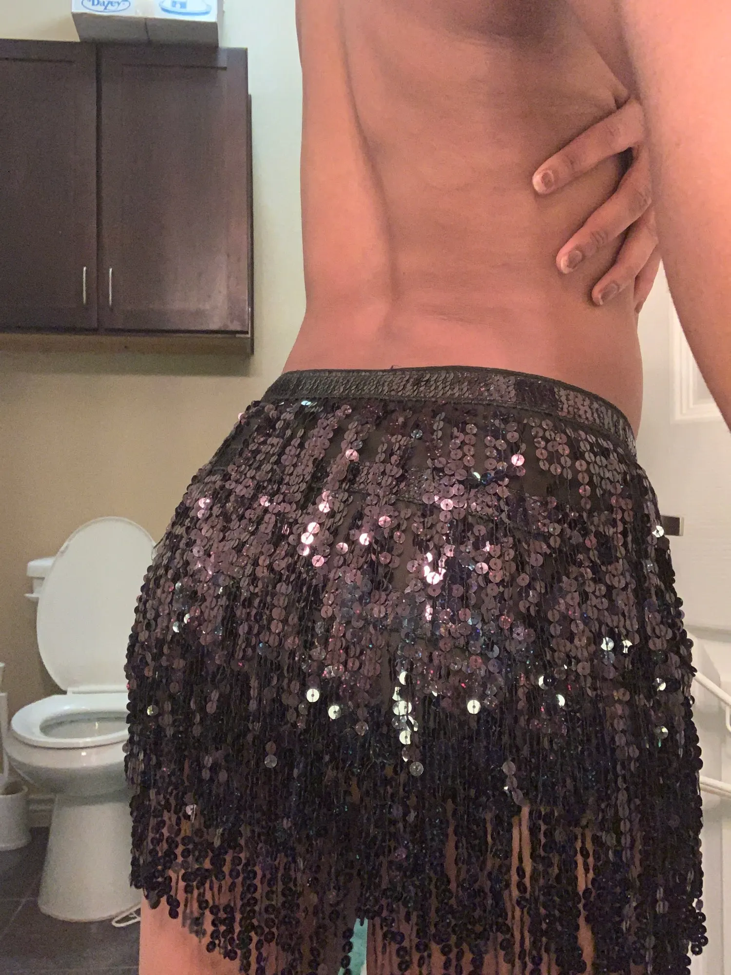 It’s a wrap skirt. It is extremely short. It’s sparkly and fun however.