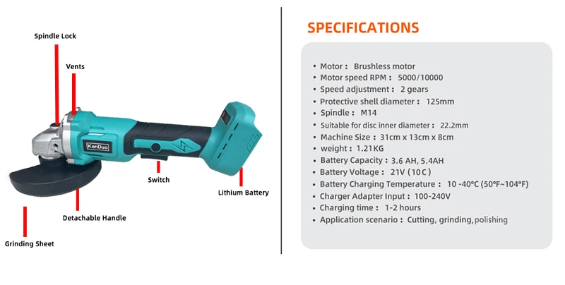 Электрическая цепная пила M14, беспроводной угловой шлифовальный станок, литиевый, 12 дюймов, 21 в