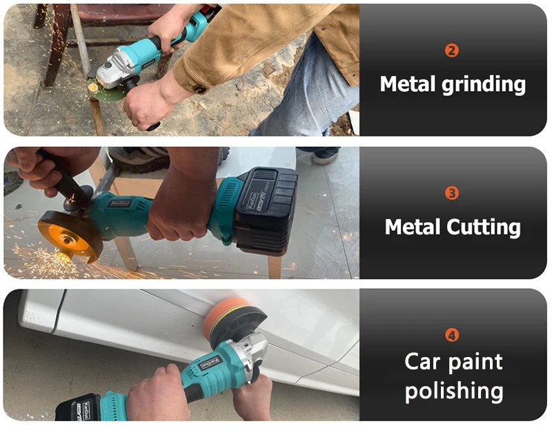 Варианты использования: резка металла, полировка, резка древесины, установка электрической цепной пилы