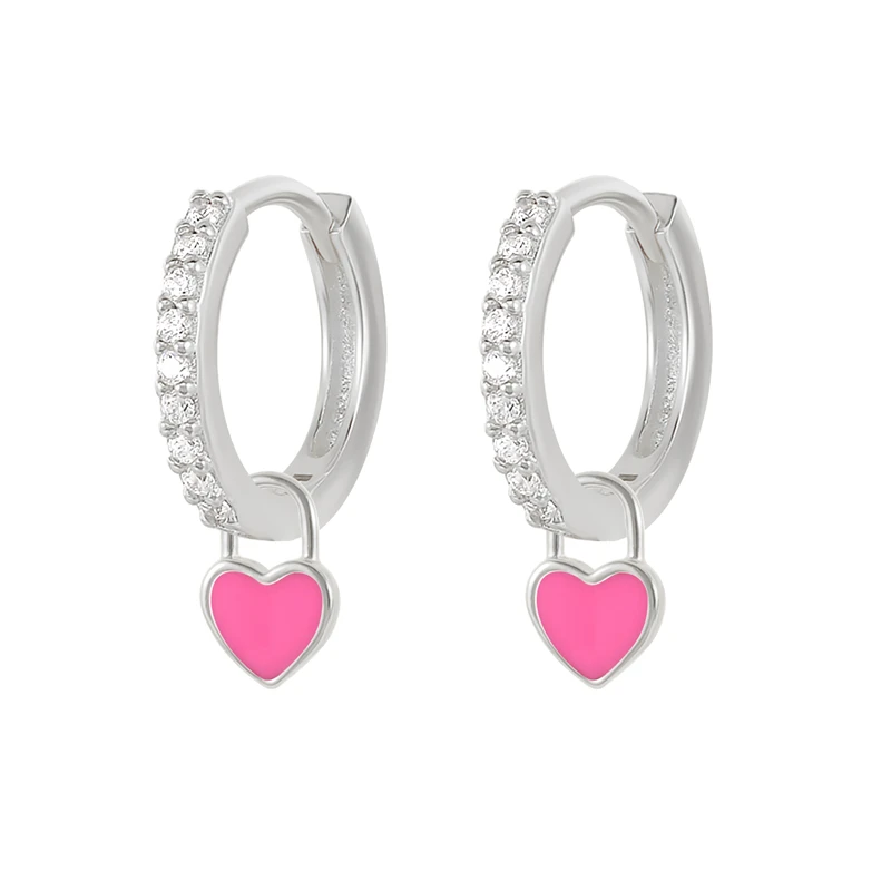 Серьги-кольца женские из серебра 925 пробы с эмалью неонового цвета