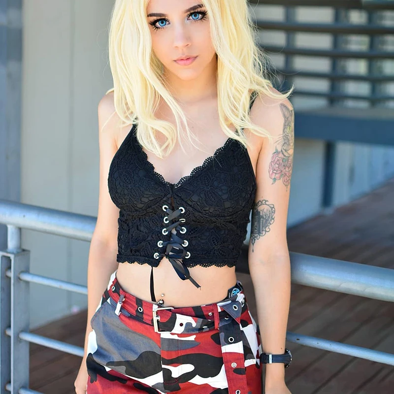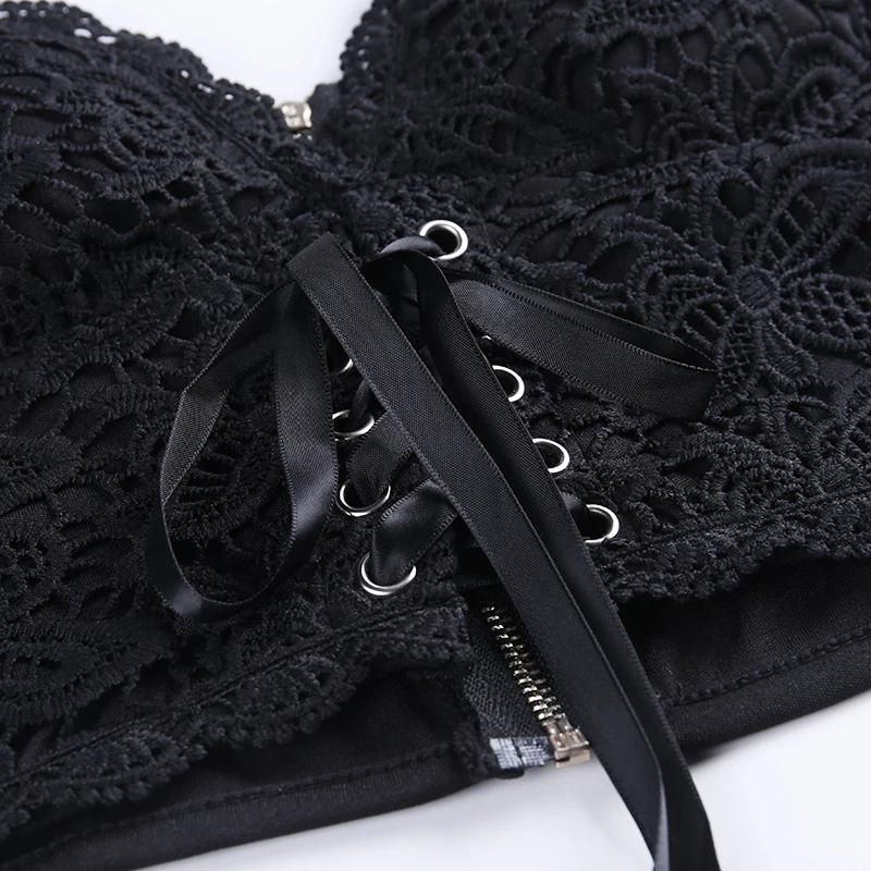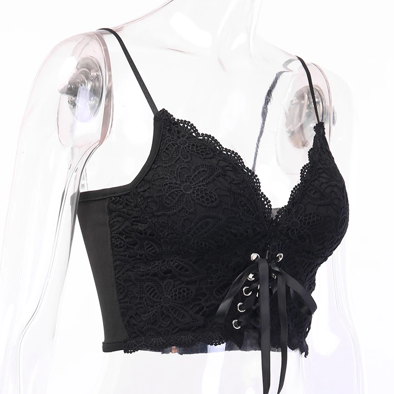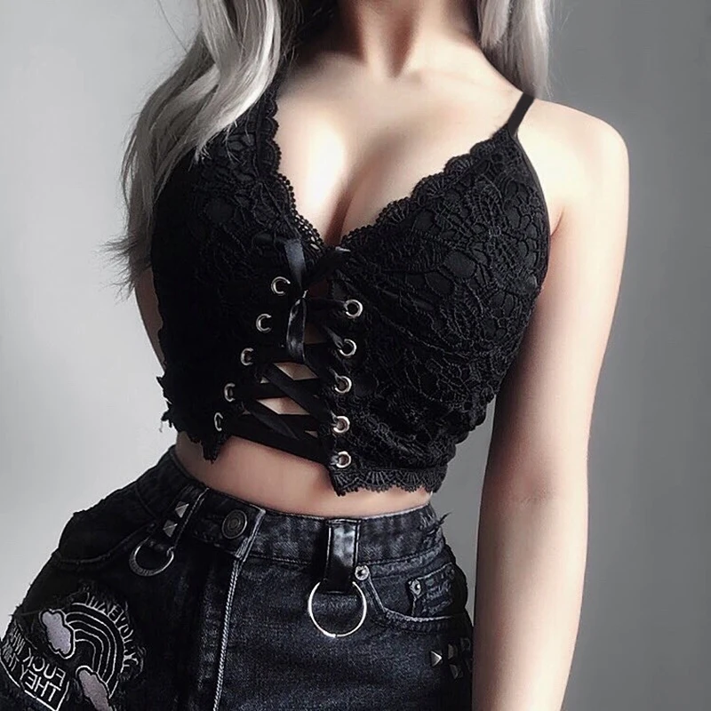 Женский укороченный топ без рукавов InsDoit, черный Винтажный кружевной топ в готическом стиле Y2K, летний топ с вырезами,