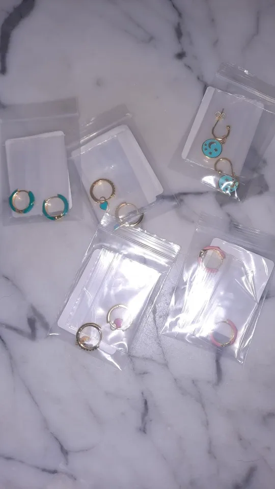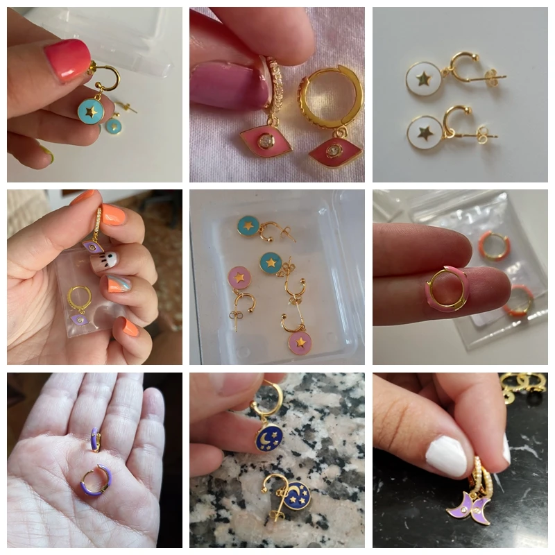 Все Серьги красивые, несколько меньше, чем кажутся. В качестве отрицательного момента я должен сказать, что он поставляется с чрезмерным количеством пластика. Индивидуальная сумка для каждого сережки. This Is Not durable. Слишком много пластика.