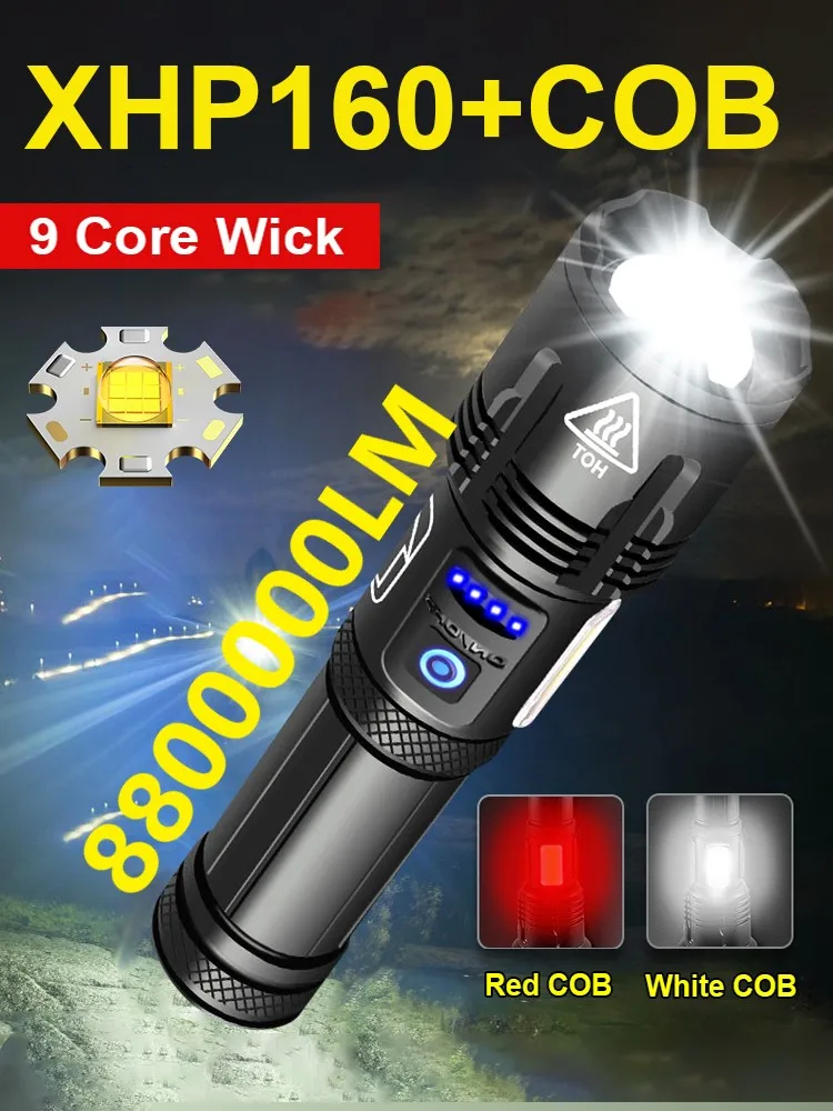 AliExpress новейшие горячие продукты:Сверхъярсветодиодный светодиодная вспышка XHP160, 9 ядер, 880000 люмен, функция босветильник освещения COB, срок службы> 100000 часов, максимальная мощность светодиодный Ной вспышки составляет 8800,00 люмен, яркость выше всего воображения!