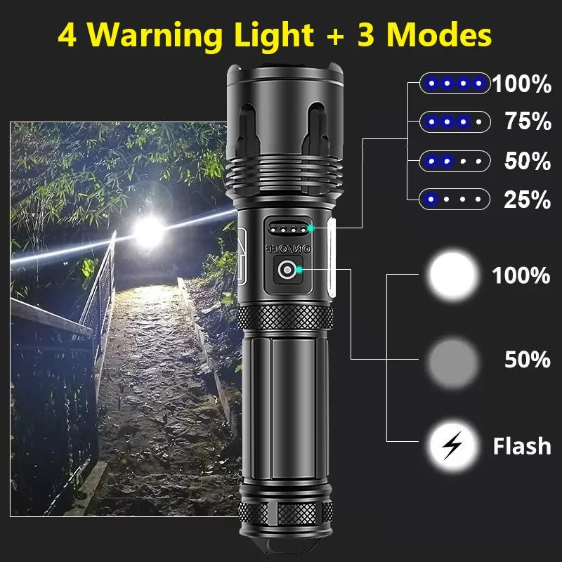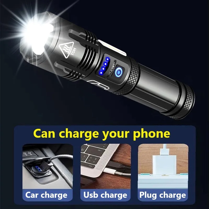 2021 XHP160 + COB мощный фонарик♥Фитиль высокой яркости XHP160, 9-жильная фитиль в упаковке и выпуклая линза, полностью улучшающая световые характеристики♥Дизайн лампы COB, белый светильник и красный светильник, подходит для многих случаев.♥Настоящий материал, сверхалюминиевый сплав, сжимающий и устойчивый к падению.♥Выдвижной зум, яркий прожектор, большая мощность дальнего действия, широкий диапазон прожектора, большое расстояние прожектора, дальность съемки до 1500 метров.♥Аккумулятор 5600 мАч, использует перезаряжаемые аккумуляторы 18650 или 26650. Во внутренней проводке используется Высокоэффективная схема повышения эффективности для максимизации использования аккумулятора. Он длиннее и прочнее обычных батарей.♥Вход и выход USB, заряженный дисплей, может использоваться как фонарик и аварийный источник питания, двойного назначения.♥Уровень водонепроницаемости может достигать уровня 8, что позволяет ночью легко справляться с суровыми внешними условиями.♥Хвост используется для размещения веревки. Веревка изготовлена из пеньковой ткани, что удобно, прочно и нелегко сломать. На момент покупки Мы подарим Вам веревку.