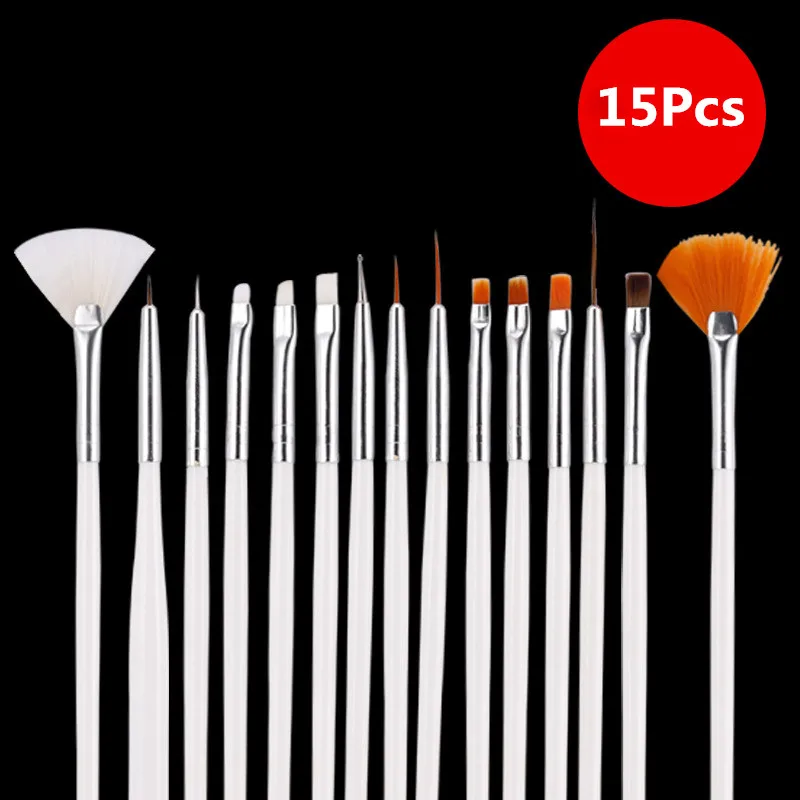 15 шт. 15 Размеров Профессиональные кисти для геля для ногтей акрил...
