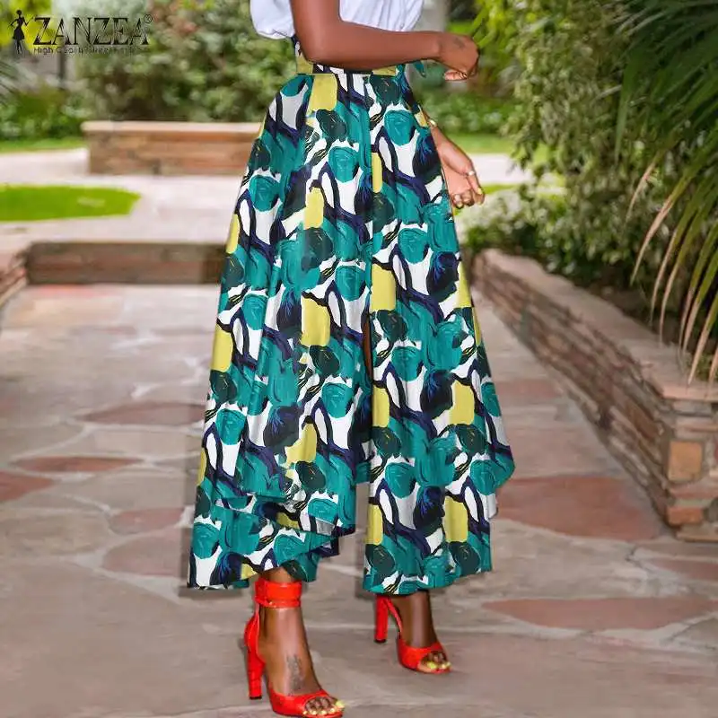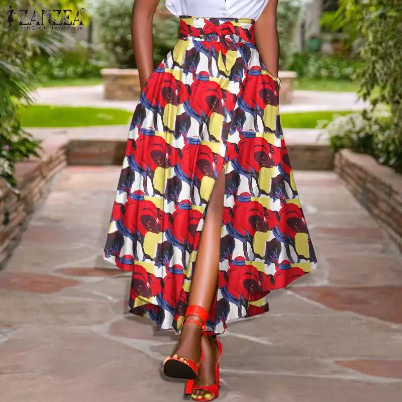 Женские богемные юбки ZANZAE, летние юбки с асимметричным принтом, повседневные бандажные юбки средней длины, Женская юбка А-силуэта на молнии, 2021