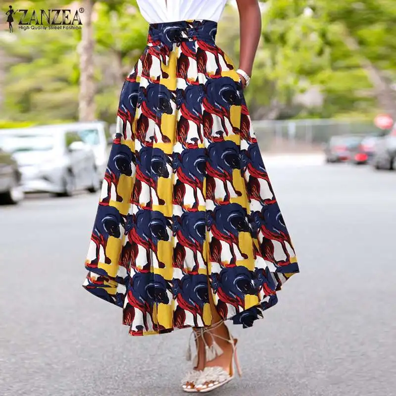 Женские юбки ZANZEA, летние винтажные Длинные Макси-юбки на молнии,...