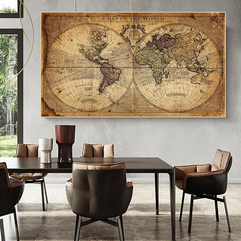 Карта мира, ретро, старинная картина, холст, винтажная картина с землей для гостиной, постеры, печать, для дома, офиса, кабинета, настенное искусство, Декор