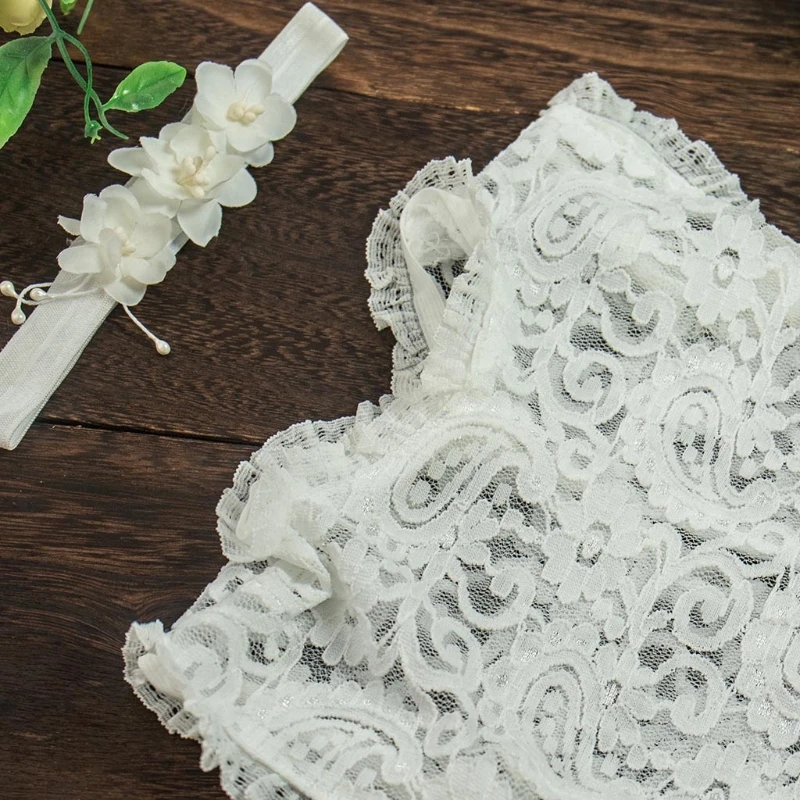 2 предмета Одежда для новорожденных Подставки для фотографий Кружевная повязка на голову Ромпер Комплект для младенцев для фотосессии наряды для малышей повязка на голову, боди, комплект