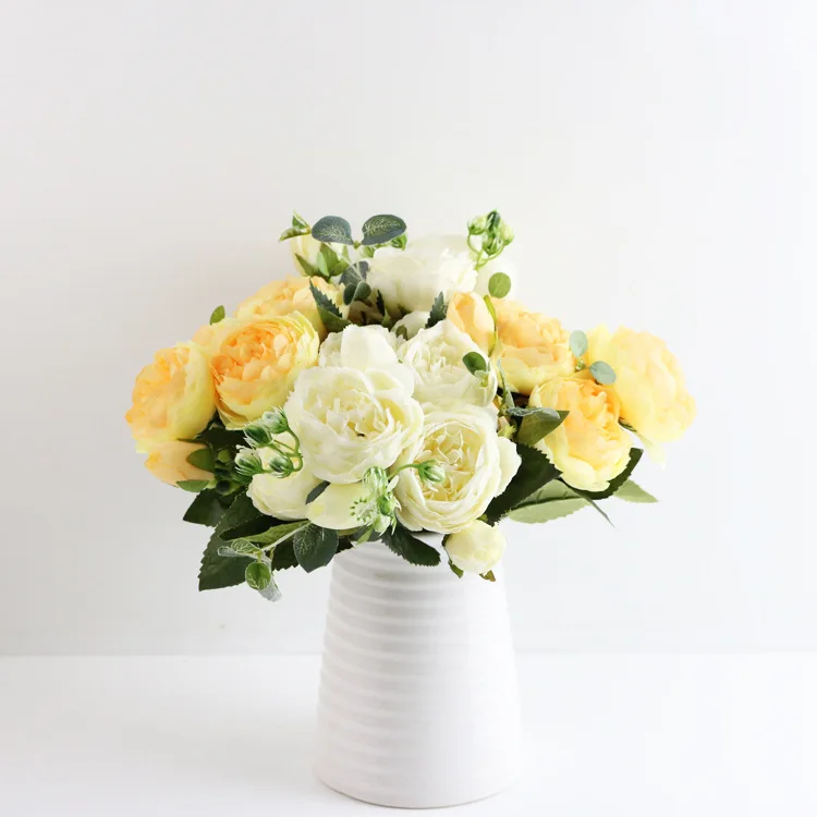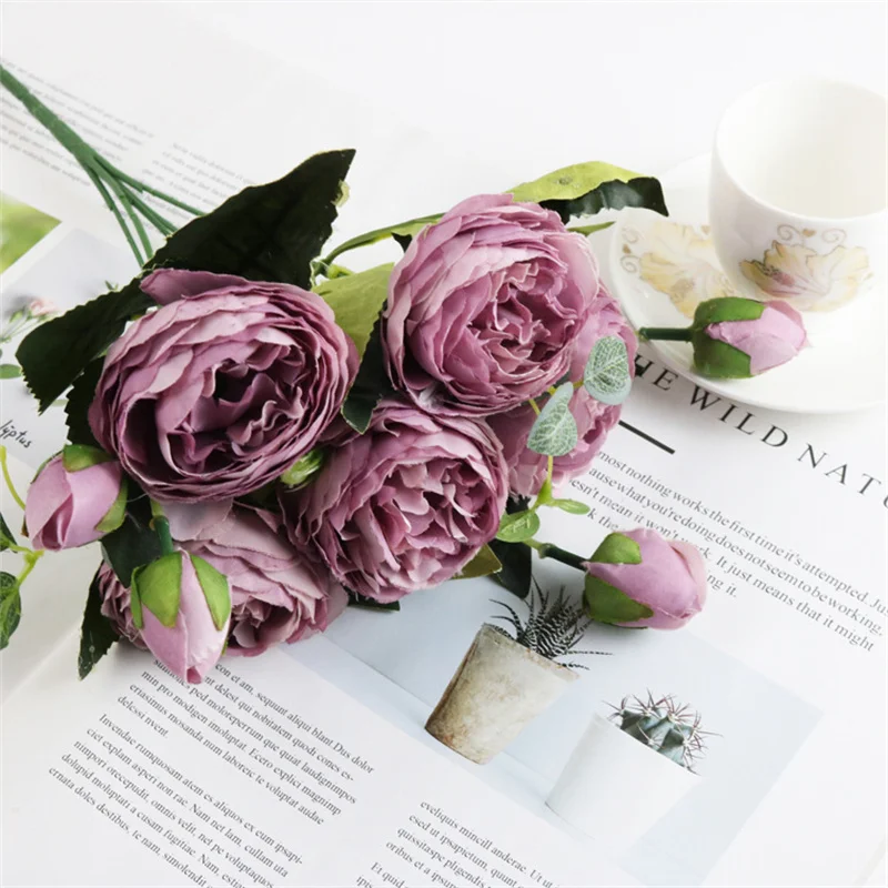 Маленькие пионы на 5 головок в Корейском стиле, маленькая ручка, букет из 5-ти розовых персидских роз, искусственный цветок для домашней свадебной церемонии