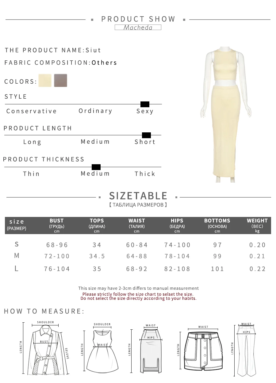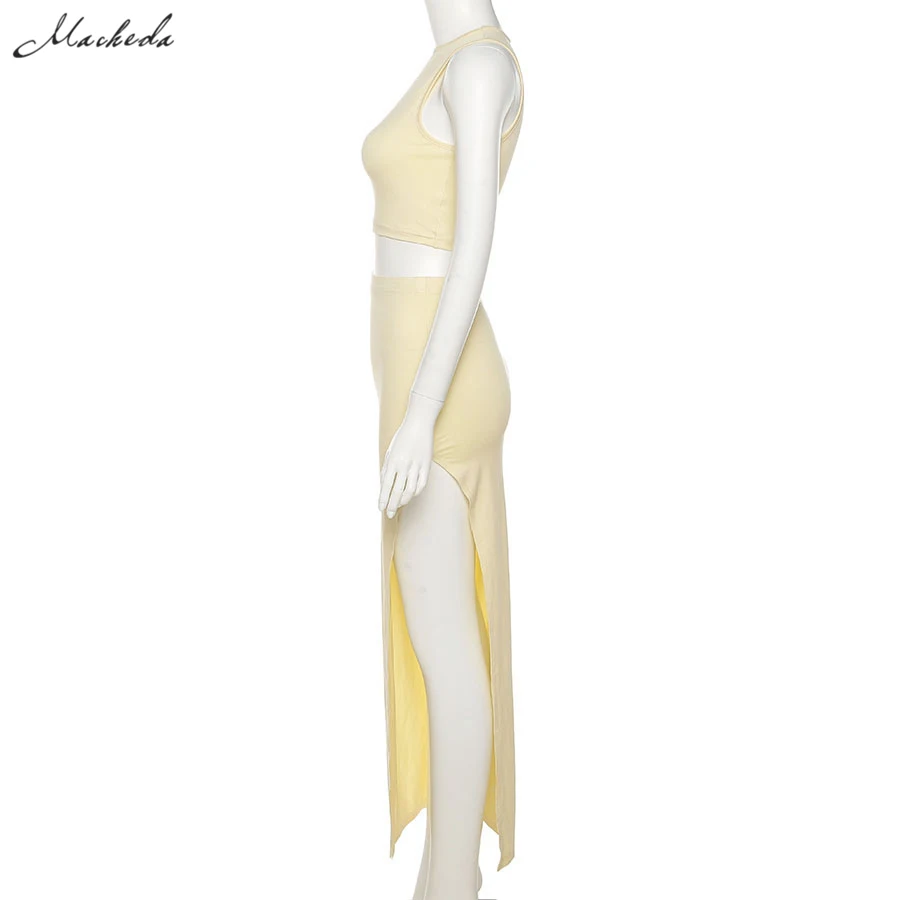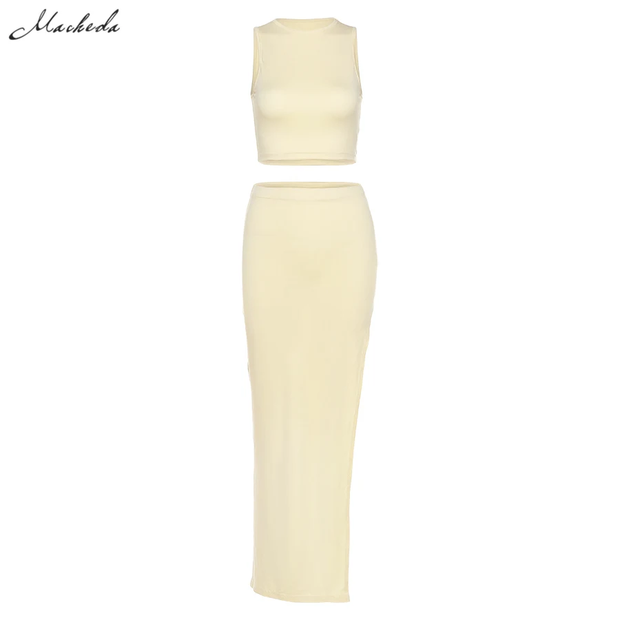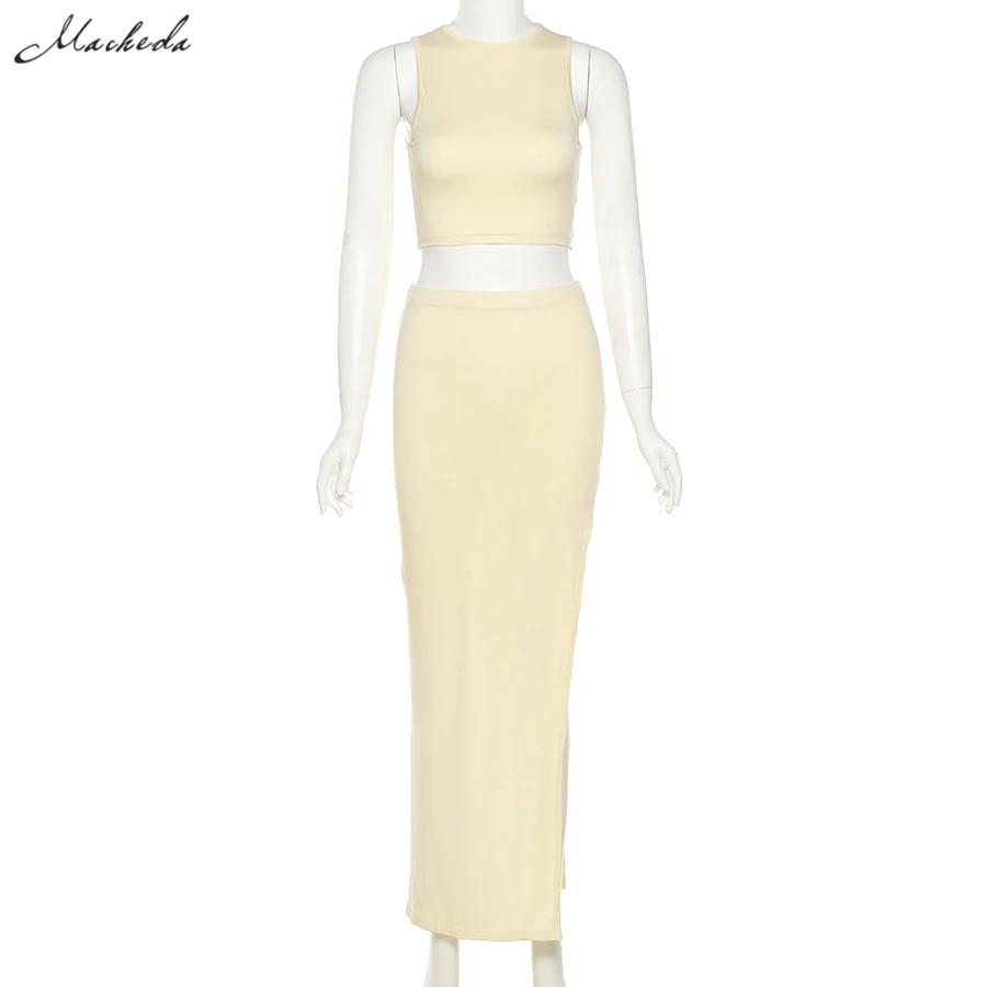 Женский трикотажный костюм Macheda, однотонный облегающий комплект из двух предметов, повседневная майка без рукавов с круглым вырезом и длинная юбка с высокой талией