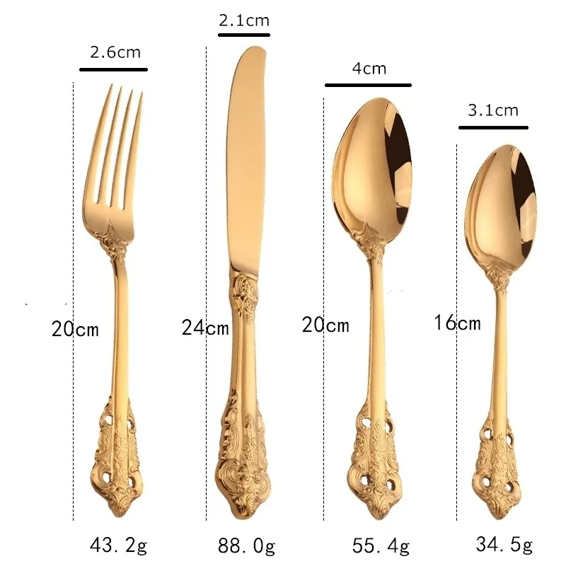 Винтажные западные Позолоченные столовые приборы 24 шт. столовые ножи вилки набор чайных ложек золотые Роскошные столовые приборы набор столовых приборов с гравировкой набор