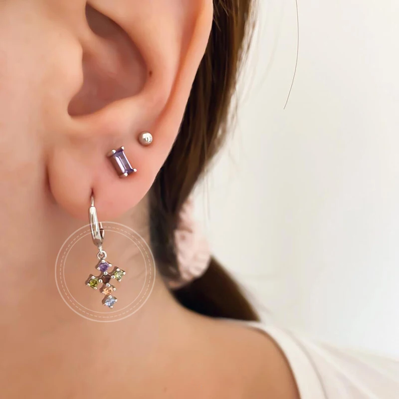 Корейские модные серьги-кольца в виде креста с радужнымфиолетовымбелым Цирконом для женщин, простые круглые серьги, модные украшения 2021