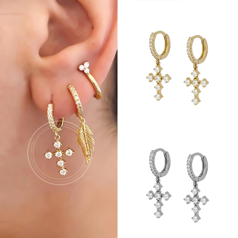 CCFJOYAS 925 стерлингового серебра серьги-кольца с крестиком женски...