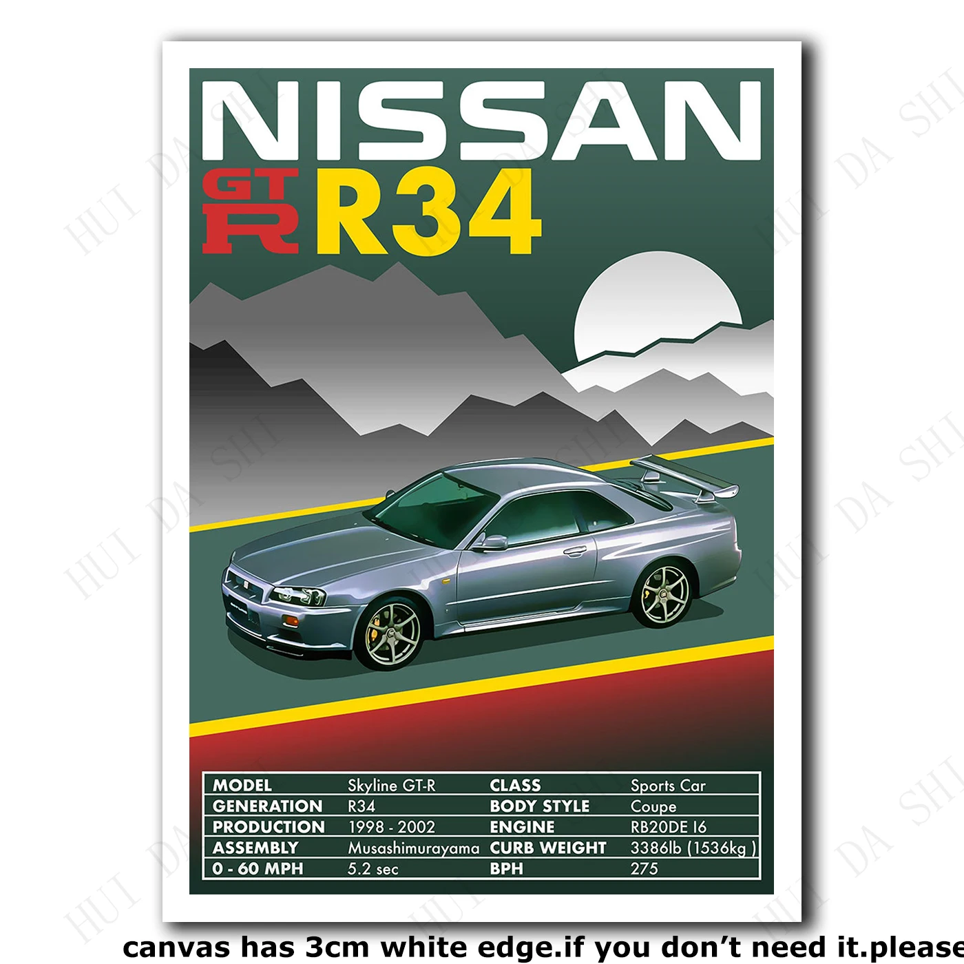 Домашний декор, холст, печать, плакат, ретро, винтажный, классический автомобиль, плакат Nissan Skyline GT R34