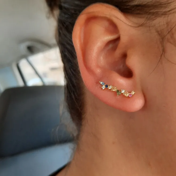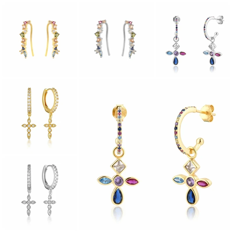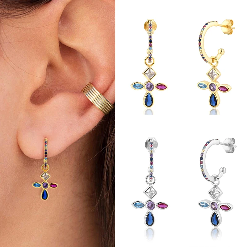 S925 стерлингового серебра мини серьгу-пачка цветов радуги для CZ ц...