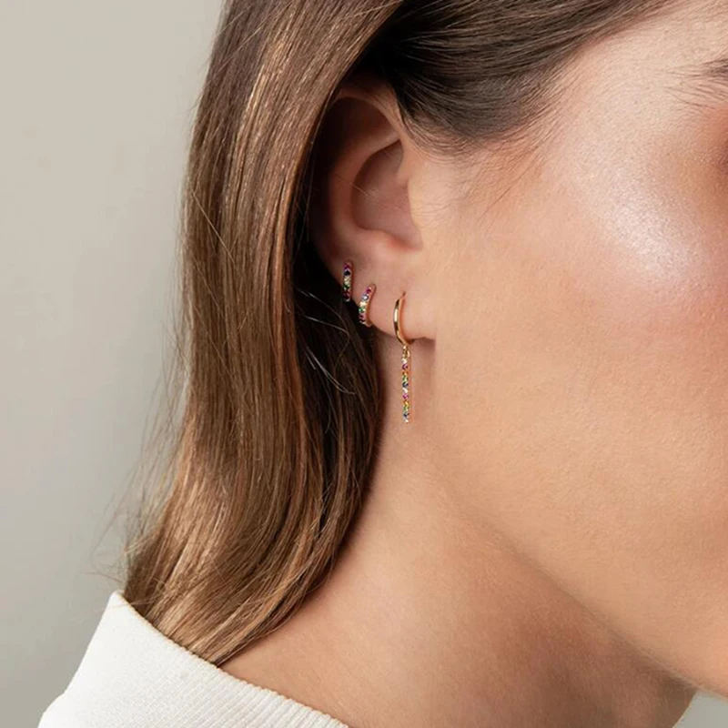 Виниловые маленькие серьги-кольца с радужным цирконием для женщин б...