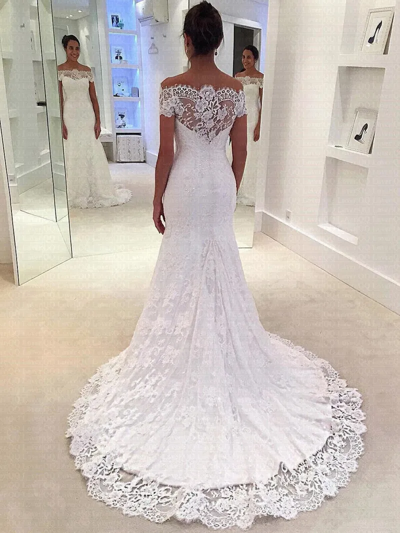 Vestido De Noiva 2021 кружево Свадебные платья Русалочки с отвесной спинкой с открытыми плечами Длинные свадебные платья с длинным рукавом, белые вечерние платья